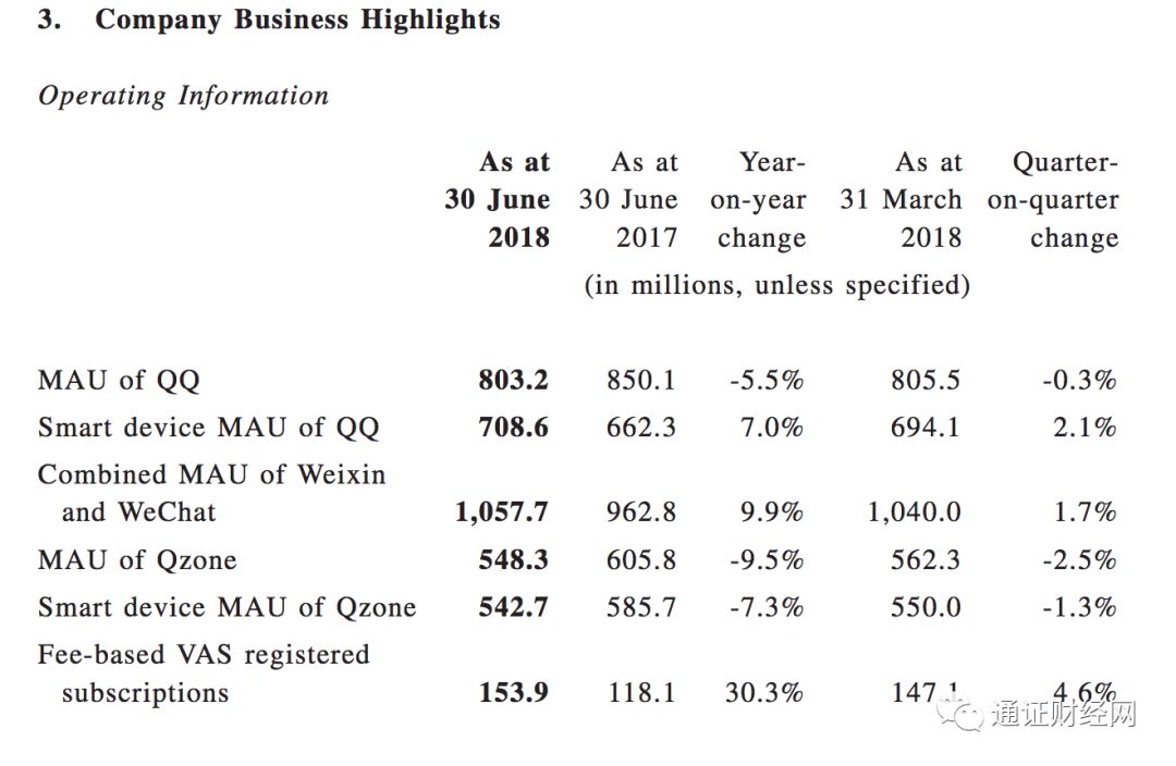 -QQ月活跃账户数达到8.03亿,比去年同期下降5.5%。